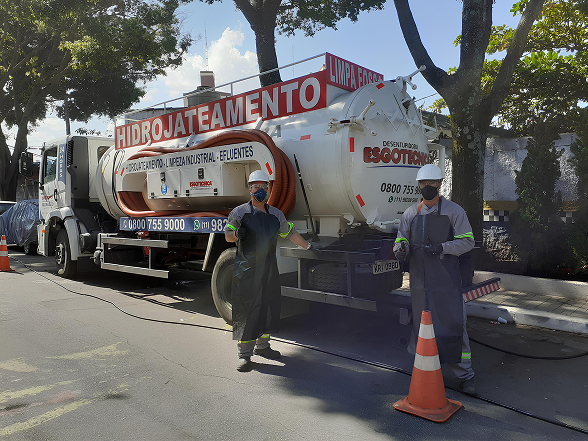 Limpeza técnica com água sob alta pressão controlada. É um serviço versátil e ecologicamente correto, utilizado em tubulações de esgotos.